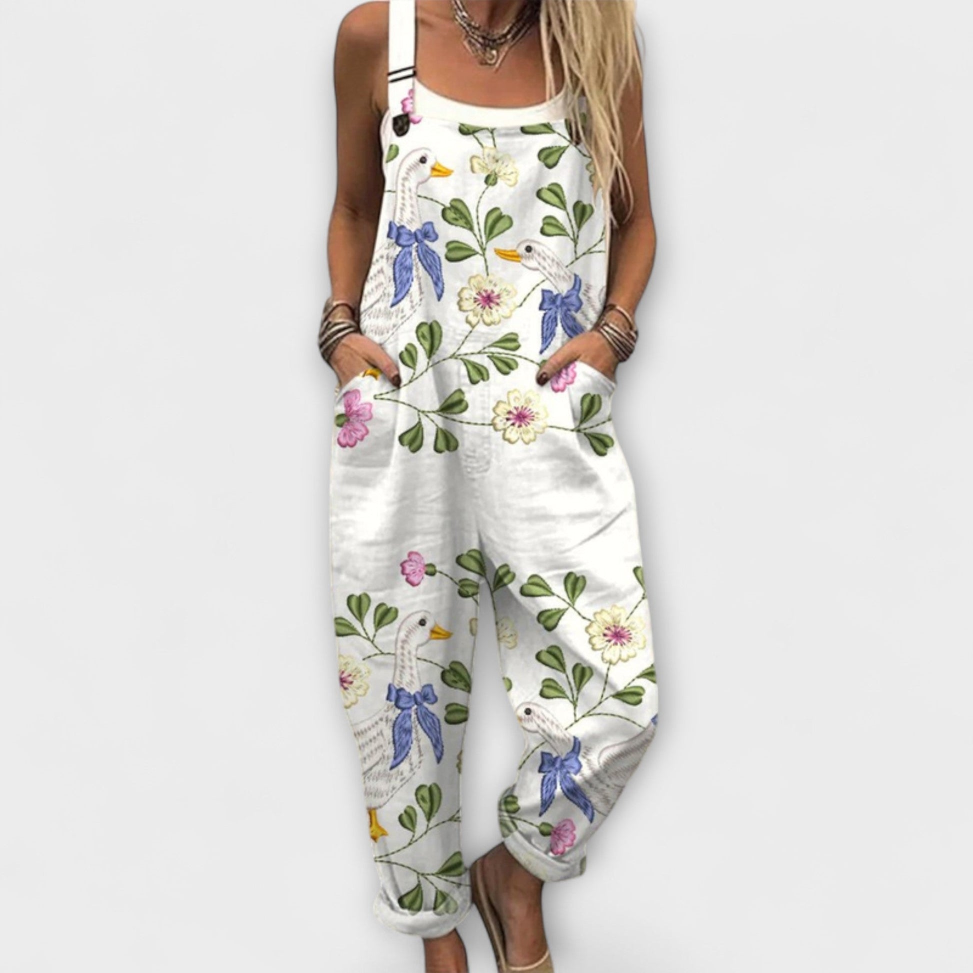 Ashlyn - Vintage květinový kombinéza se širokými nohavicemi