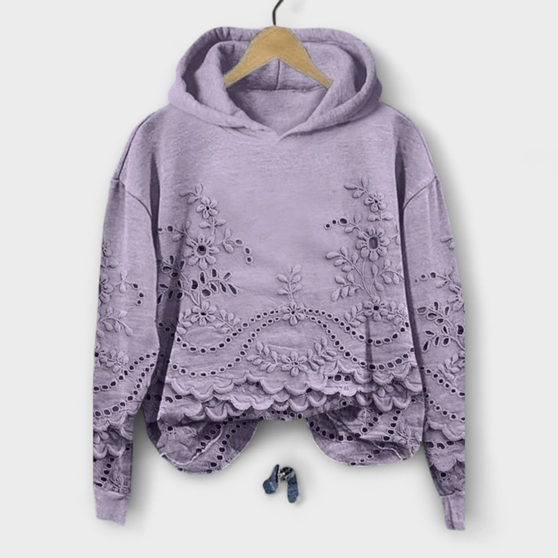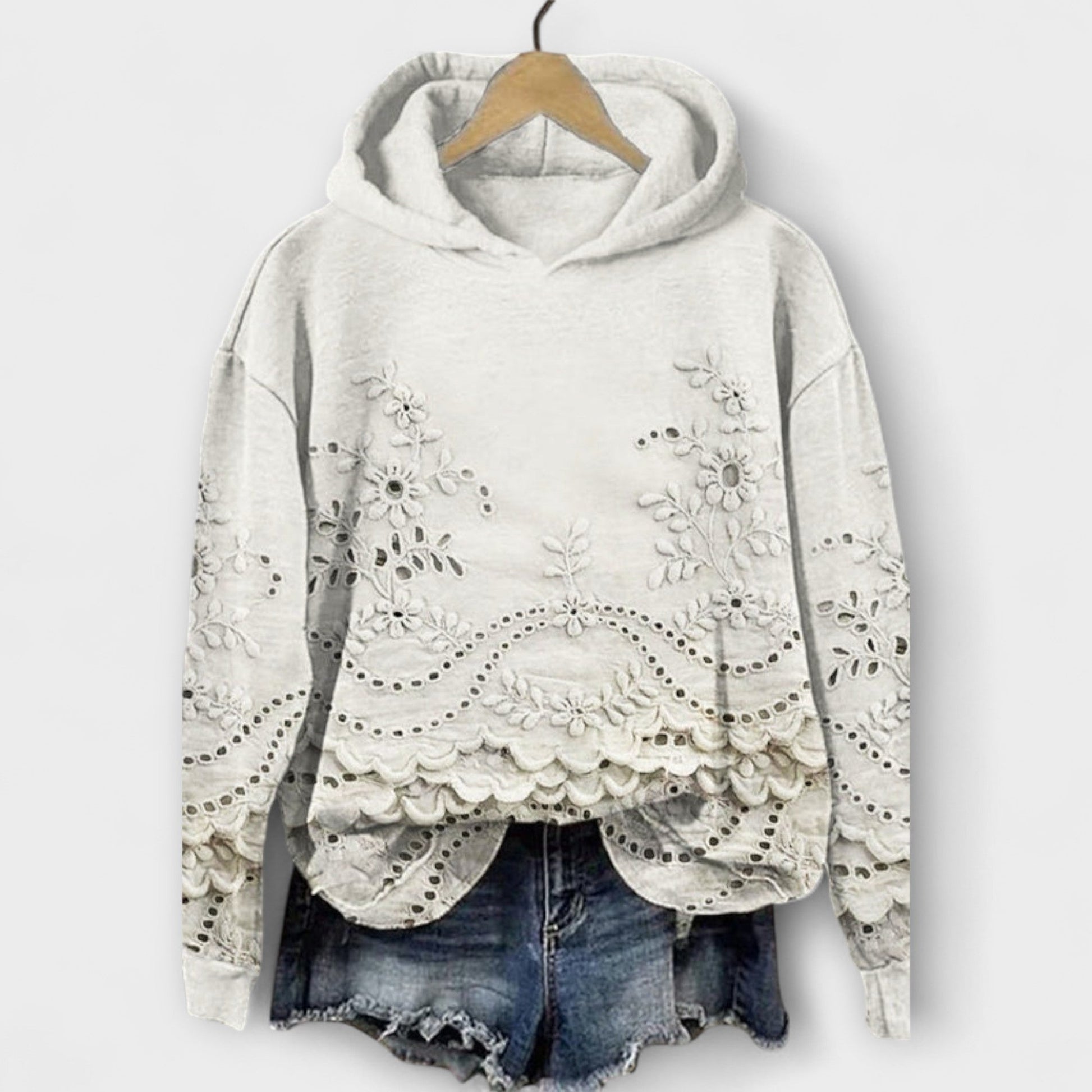Mikina s kapucí z krajky Prato spojuje pohodlí s půvabem, ideální pro víkendové lenošení, večerní procházky nebo příjemné chvíle s knihou. Tento kousek přetváří neformální mikinu na elegantní kousek s vyšívanými detaily.