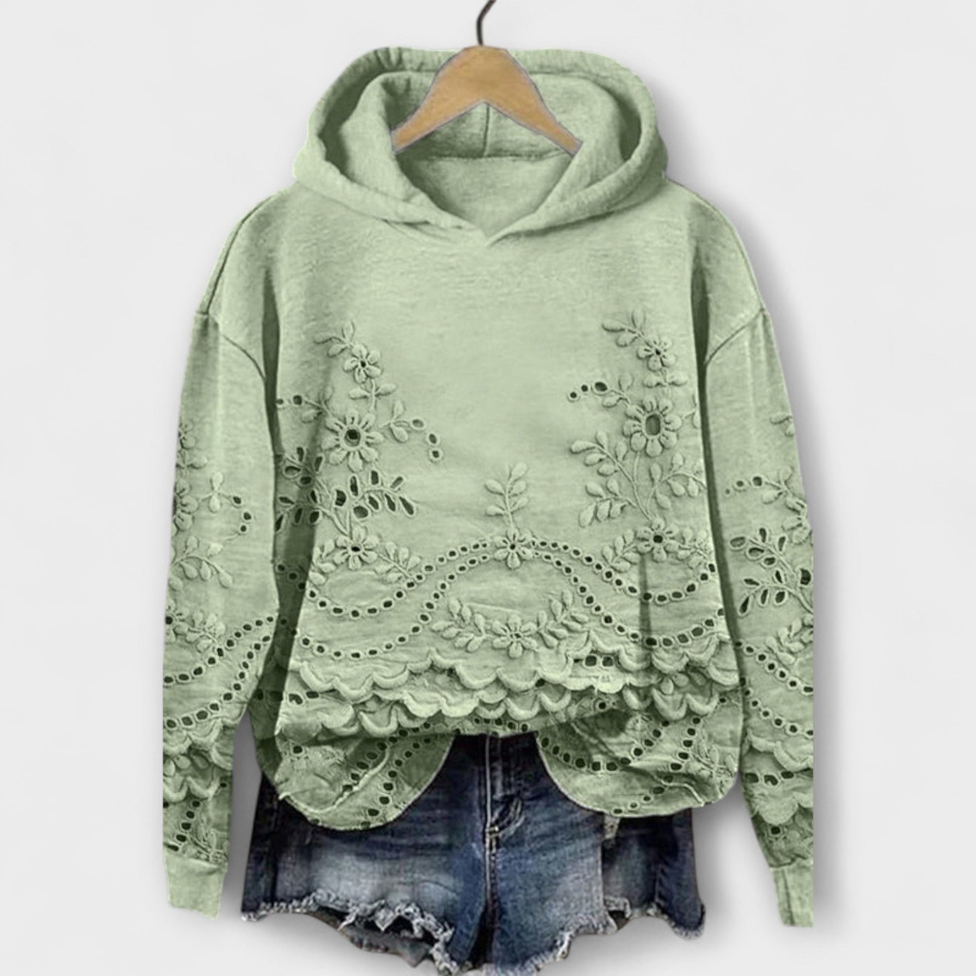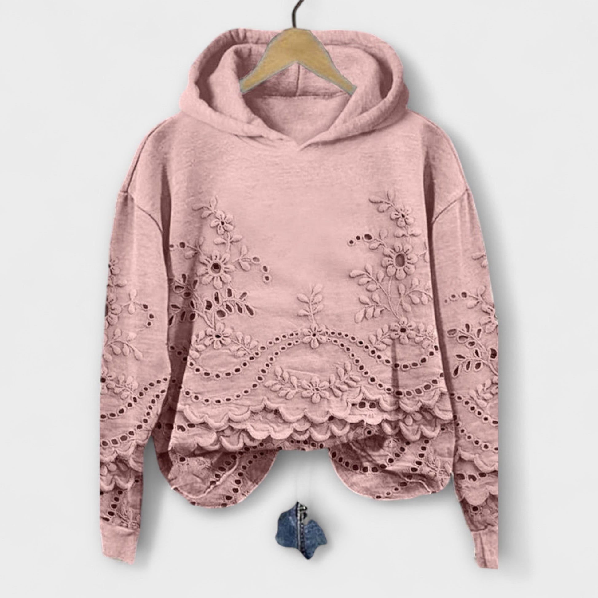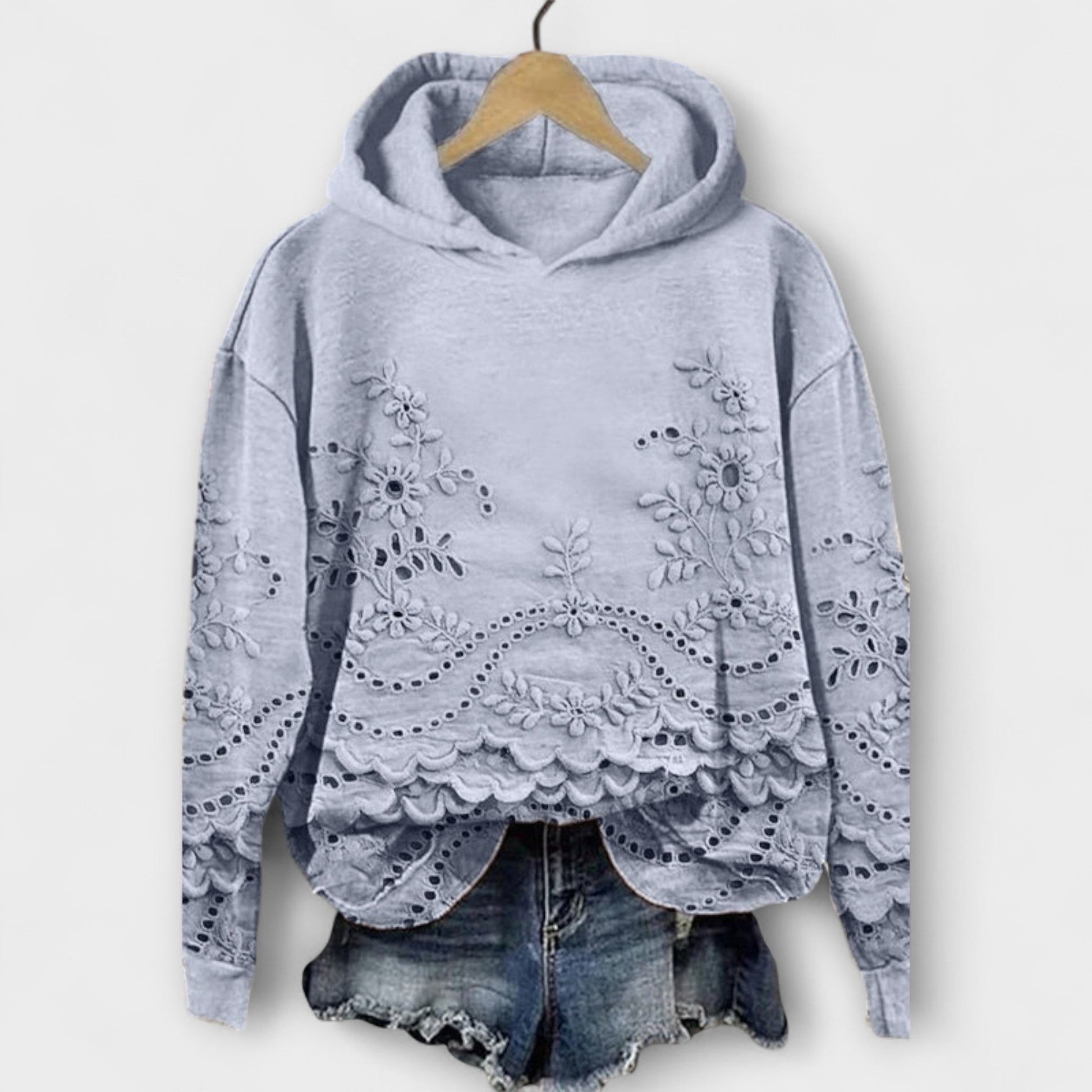 - Neformální ženskost: Klasická mikina s elegantním vyšíváním.