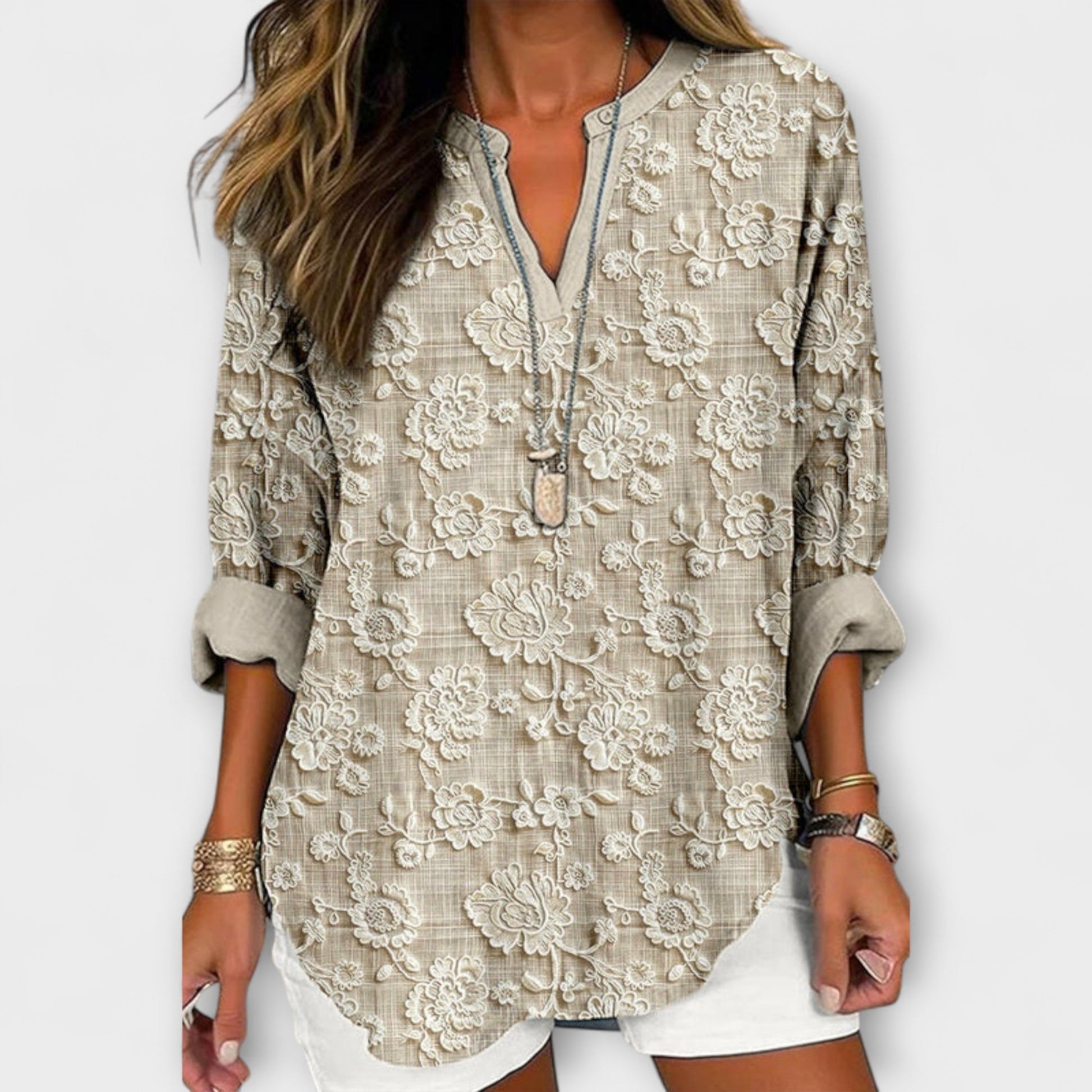 Blůza Desert Bloom je dokonalým spojením rustikální textury a moderní ženskosti, ideální pro slunečné dny a neformální večeře. S diskrétní elegancí a jednoduchým drapováním přináší do vašeho šatníku přirozenou krásu.