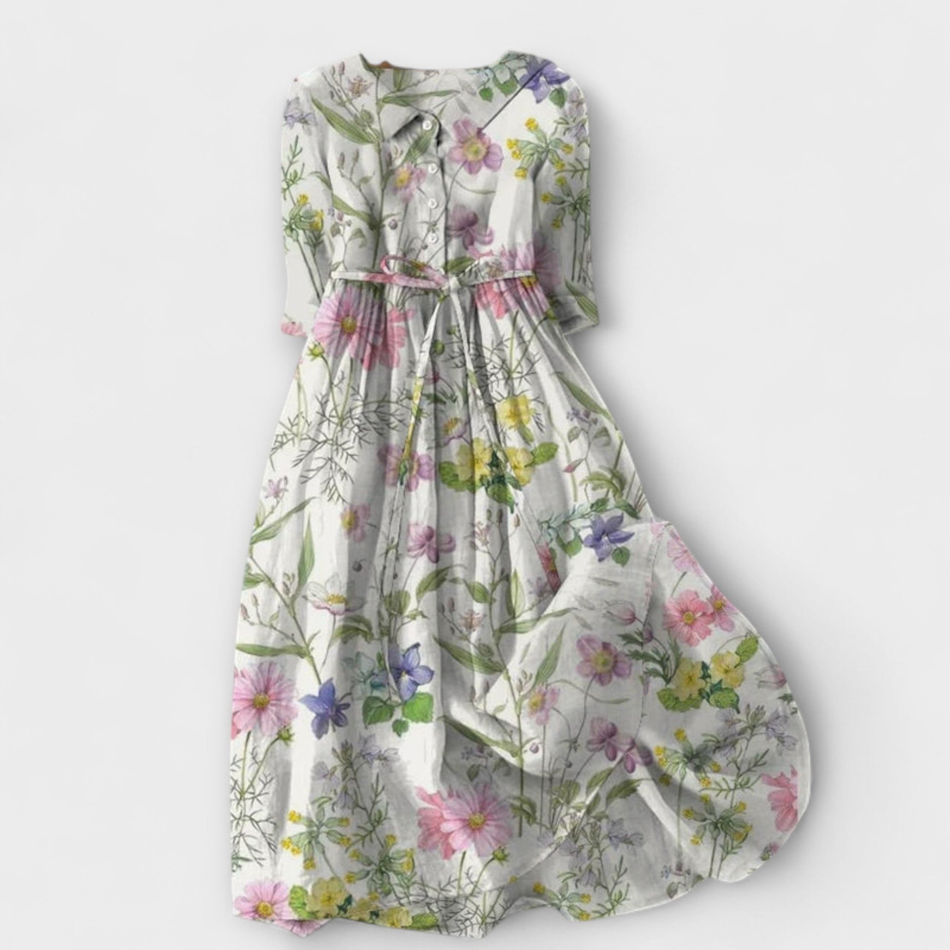 Dahlia - Letní A-Linie Květinové Šaty s Krajkovým Zavazováním v Pásu