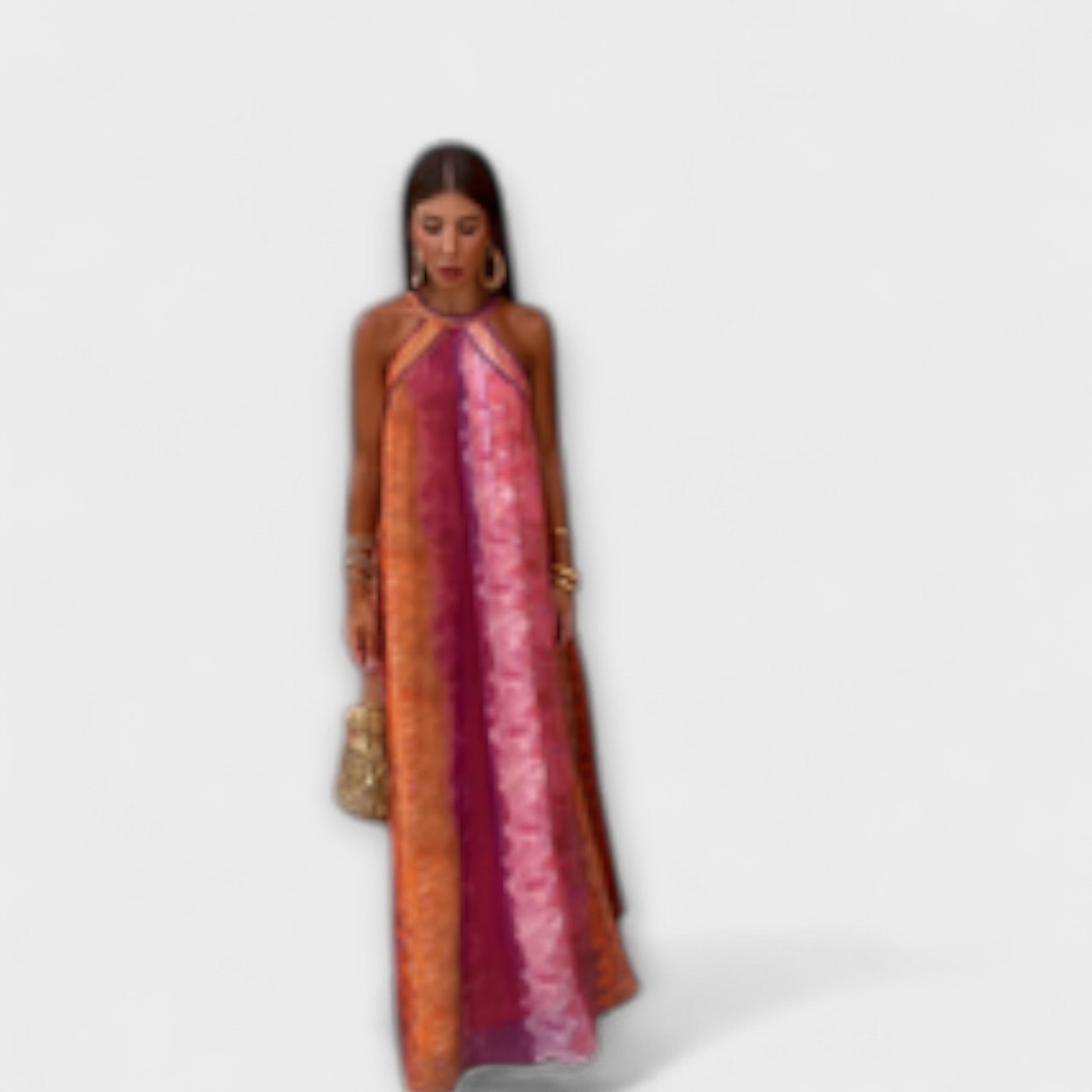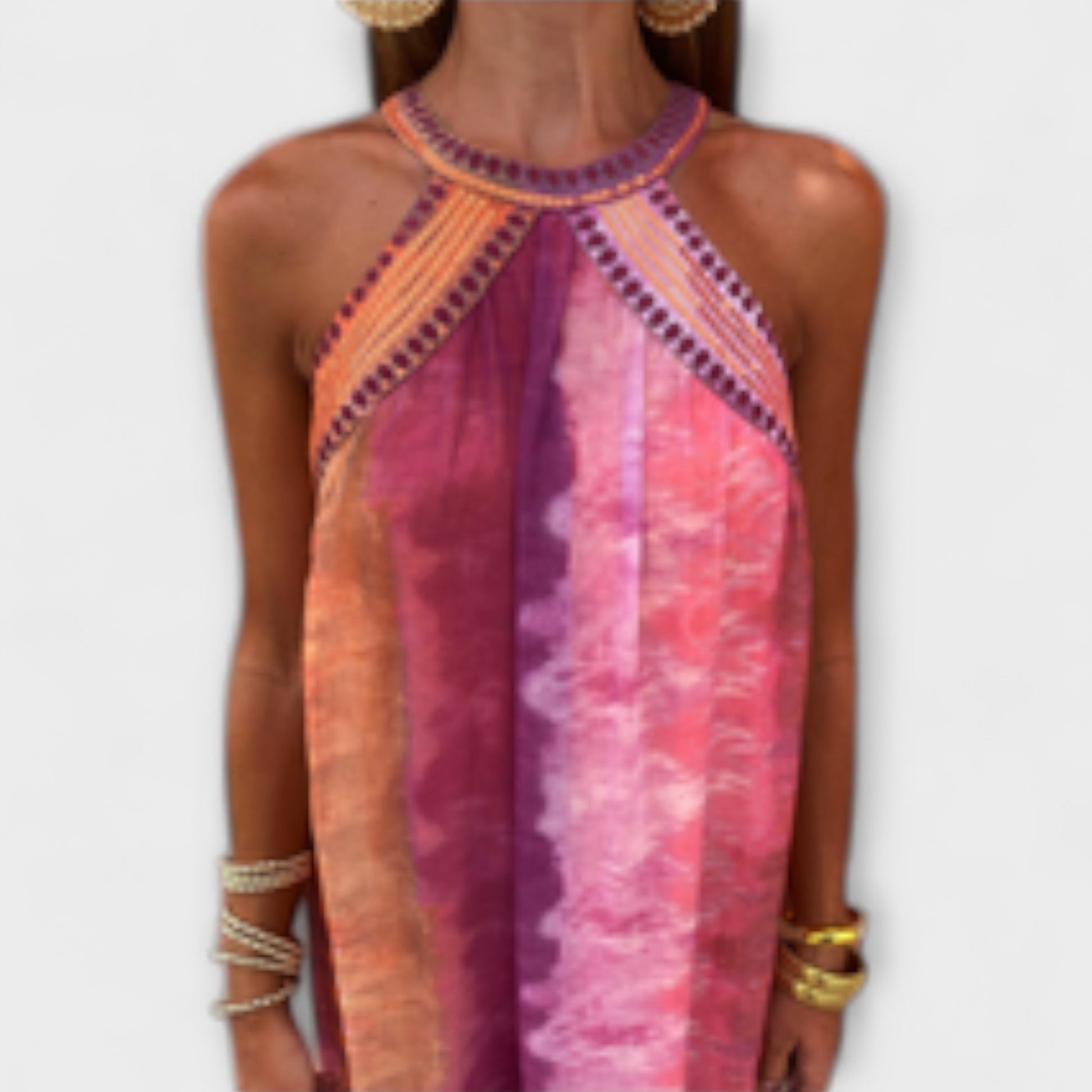 Vylepšete svůj šatník s našimi úžasnými dlouhými šaty s batikovaným vzorem, které kombinují pohodlí a styl. S elegantním halter výstřihem a bezramenným designem jsou ideální pro každou příležitost – od neformálních výletů po elegantní setkání.