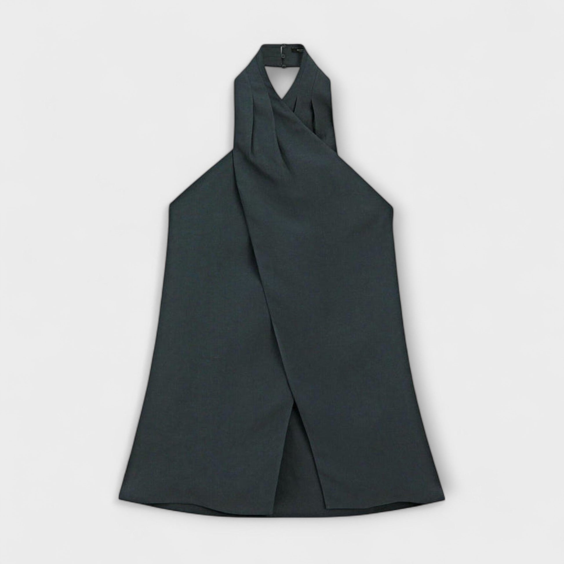 Hannah - Modrý top s halter krkem a výřezem na zádech