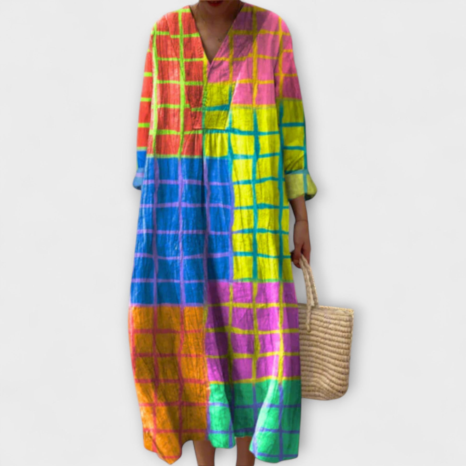 Leona - Maxi šaty s živým kostkovaným vzorem