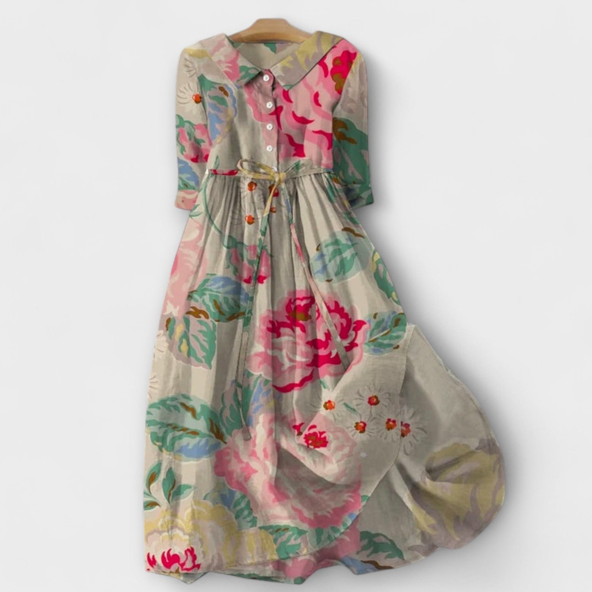 Livia - Elegantní Šaty s Krátkým Rukávem a Květinovým Motívem