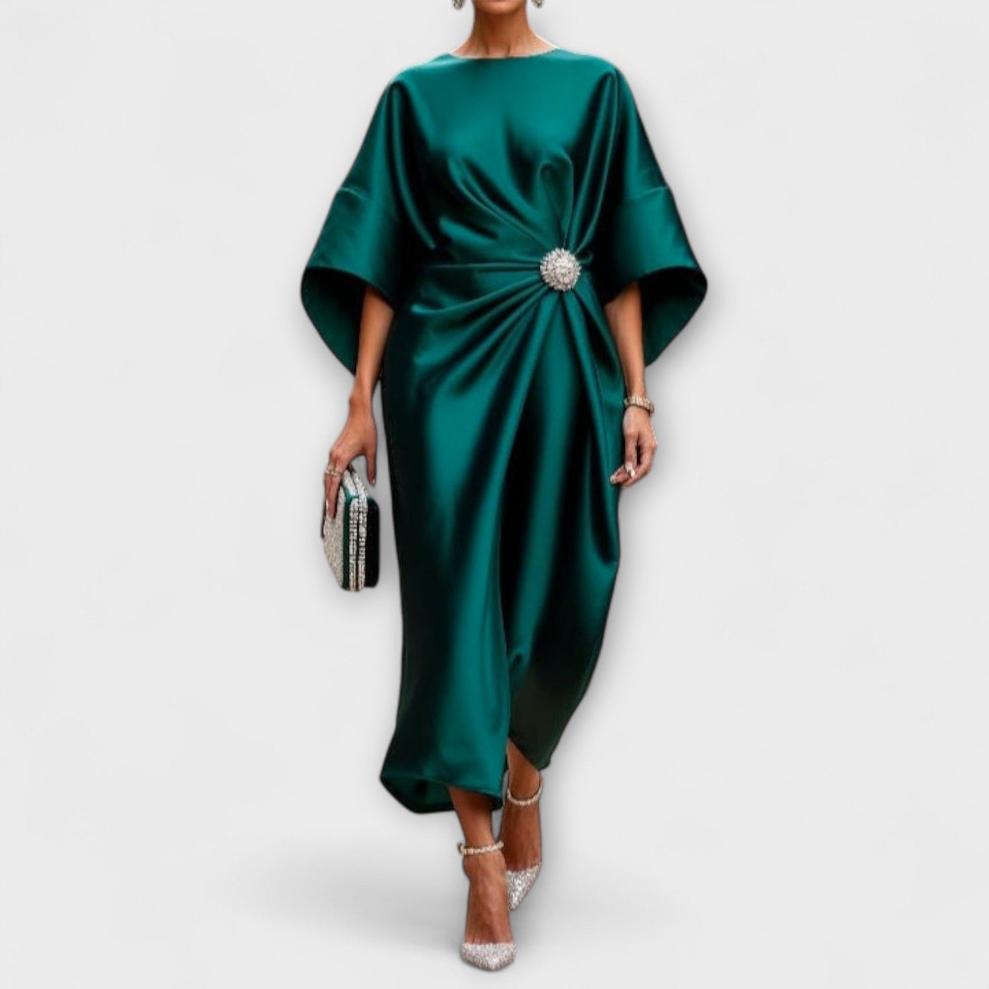 S bohatou barvou, dokonalým drapováním a elegantním leskem je tento nadčasový kousek ideálním společníkem na gala, svatby a jakoukoli elegantní událost ve vašem kalendáři.