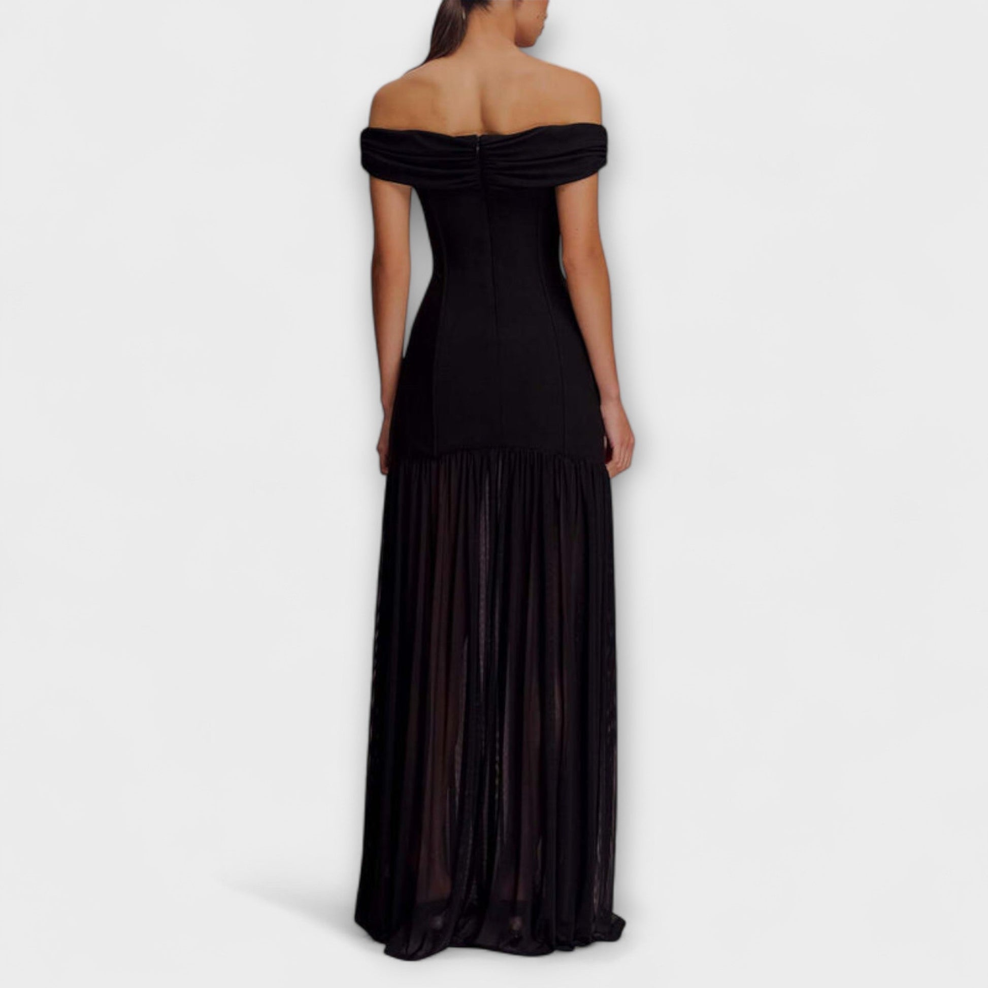 Maelie - Elegantní bezramínková bodycon maxi šaty s květinovými ozdobami