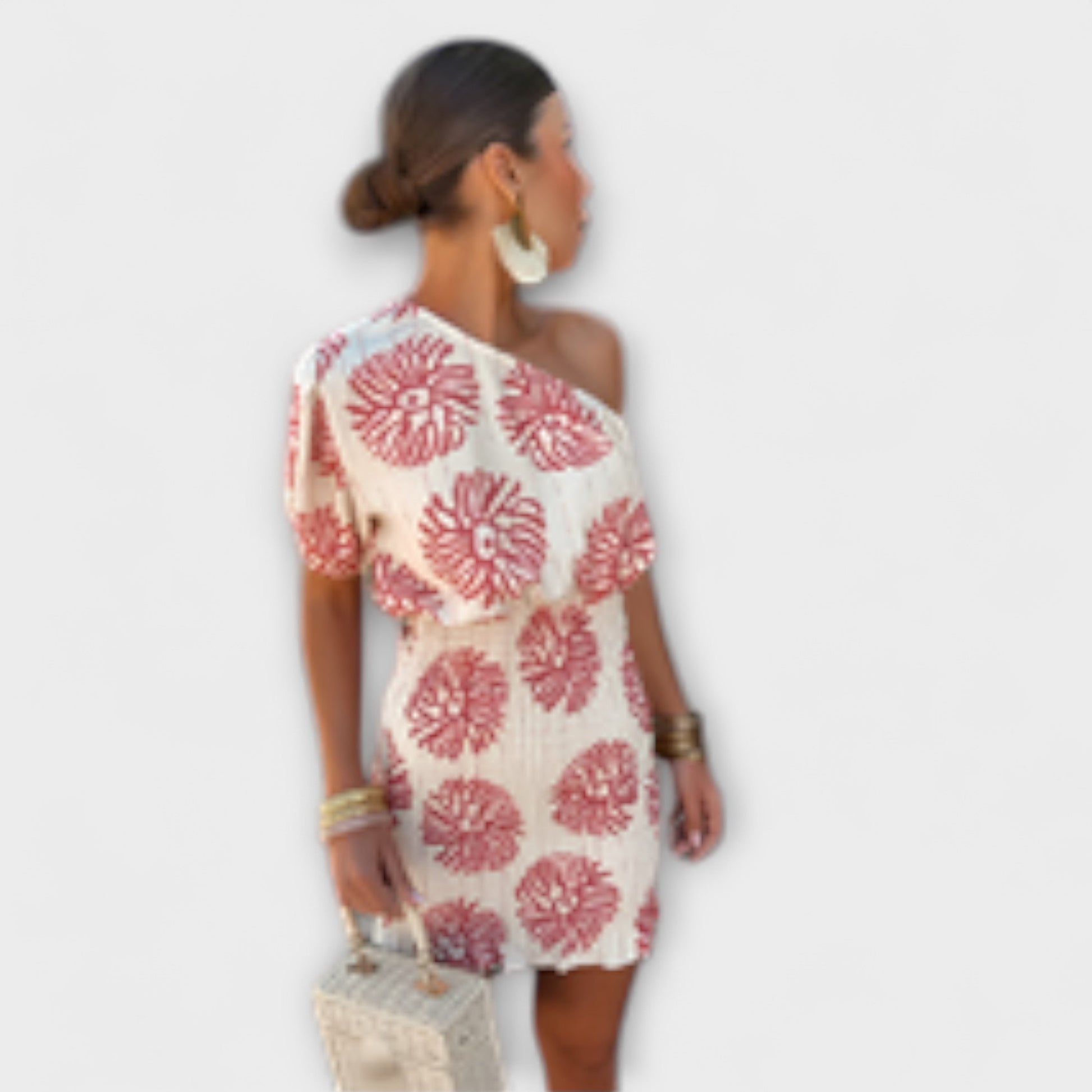 Zažijte dokonalou kombinaci stylu a pohodlí s našimi šaty Natalie. Tento ohromující design s jedním ramenem zvýrazňuje váš dekolt a přitom zůstává bez námahy elegantní. Živý potisk zachycuje podstatu léta, což z něj činí nezbytnost pro váš šatník.