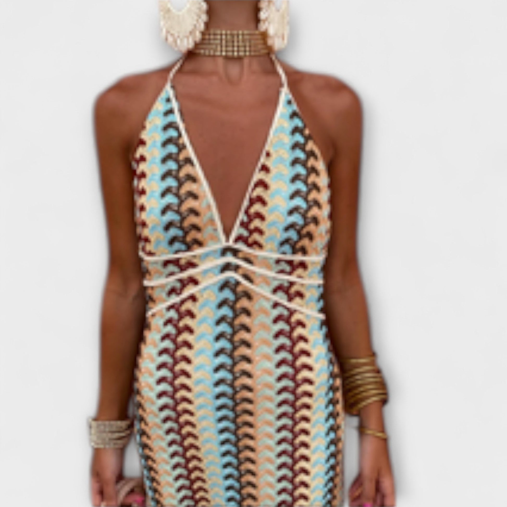Vyrobeny z , tyto šaty elegantně splývají, zajišťujíce pohodlí a sofistikovanost. Lichotivý výstřih do V a otevřená záda vytvářejí šik, bezstarostný vzhled, který krásně obepíná vaši postavu.