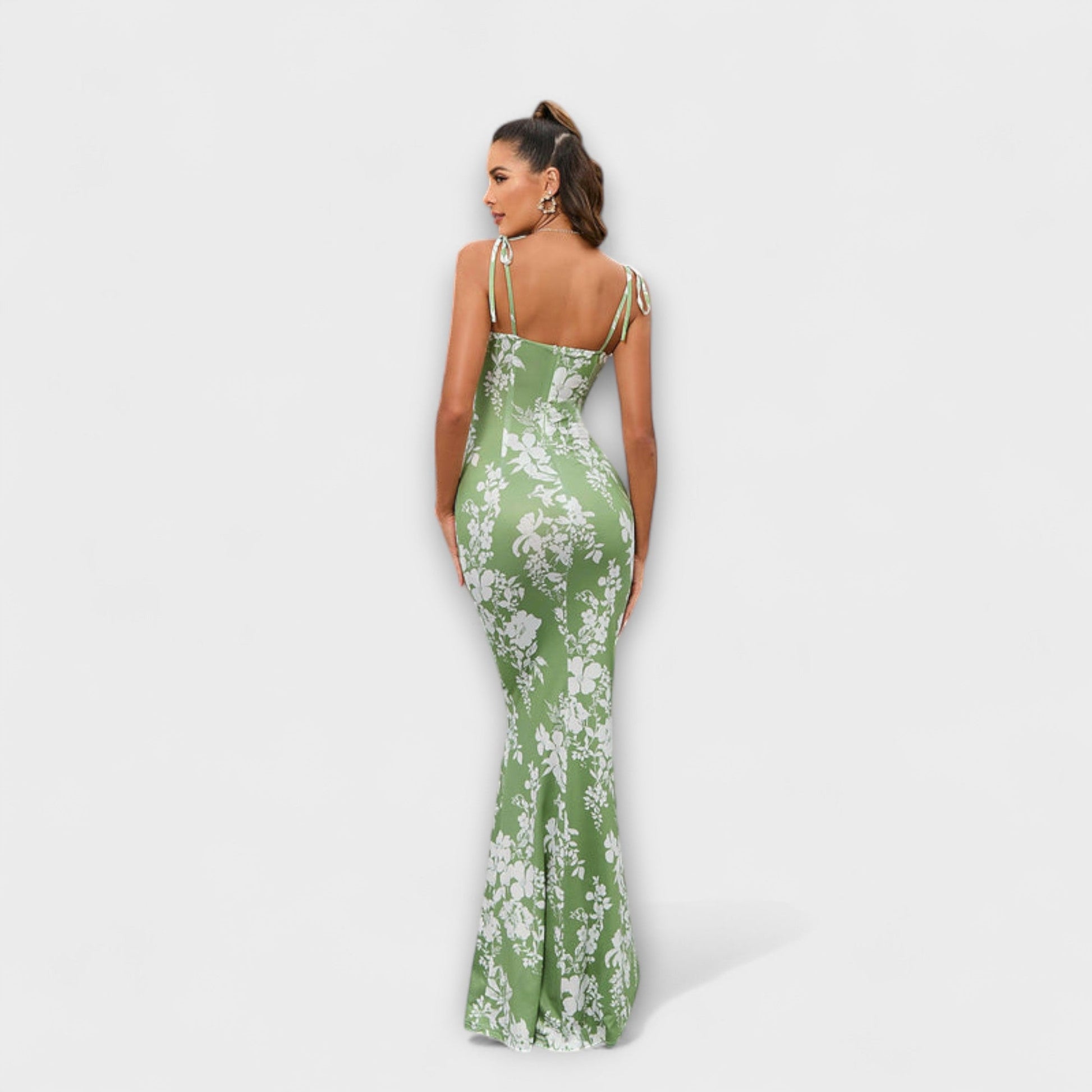 Thalia - Šaty na ples s květinovým potiskem a zavázanými ramínky